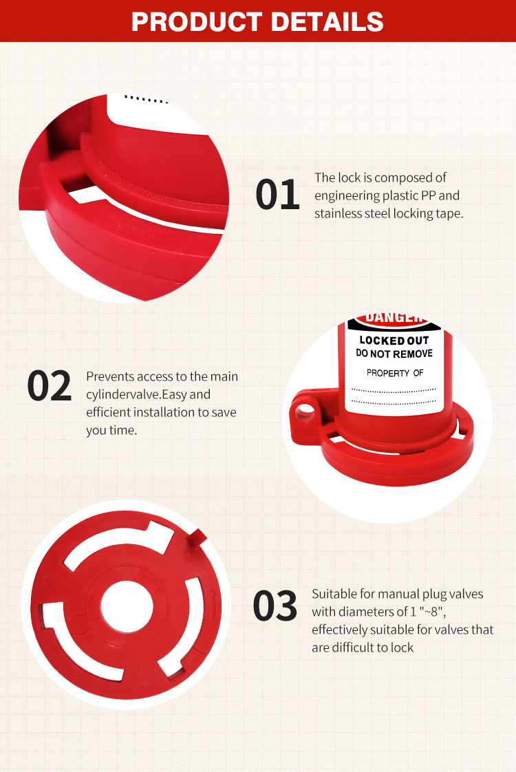4.The base of the lockout device can remain in place once applied, and generally does not interfere with valve activation by wrench or removable handle.